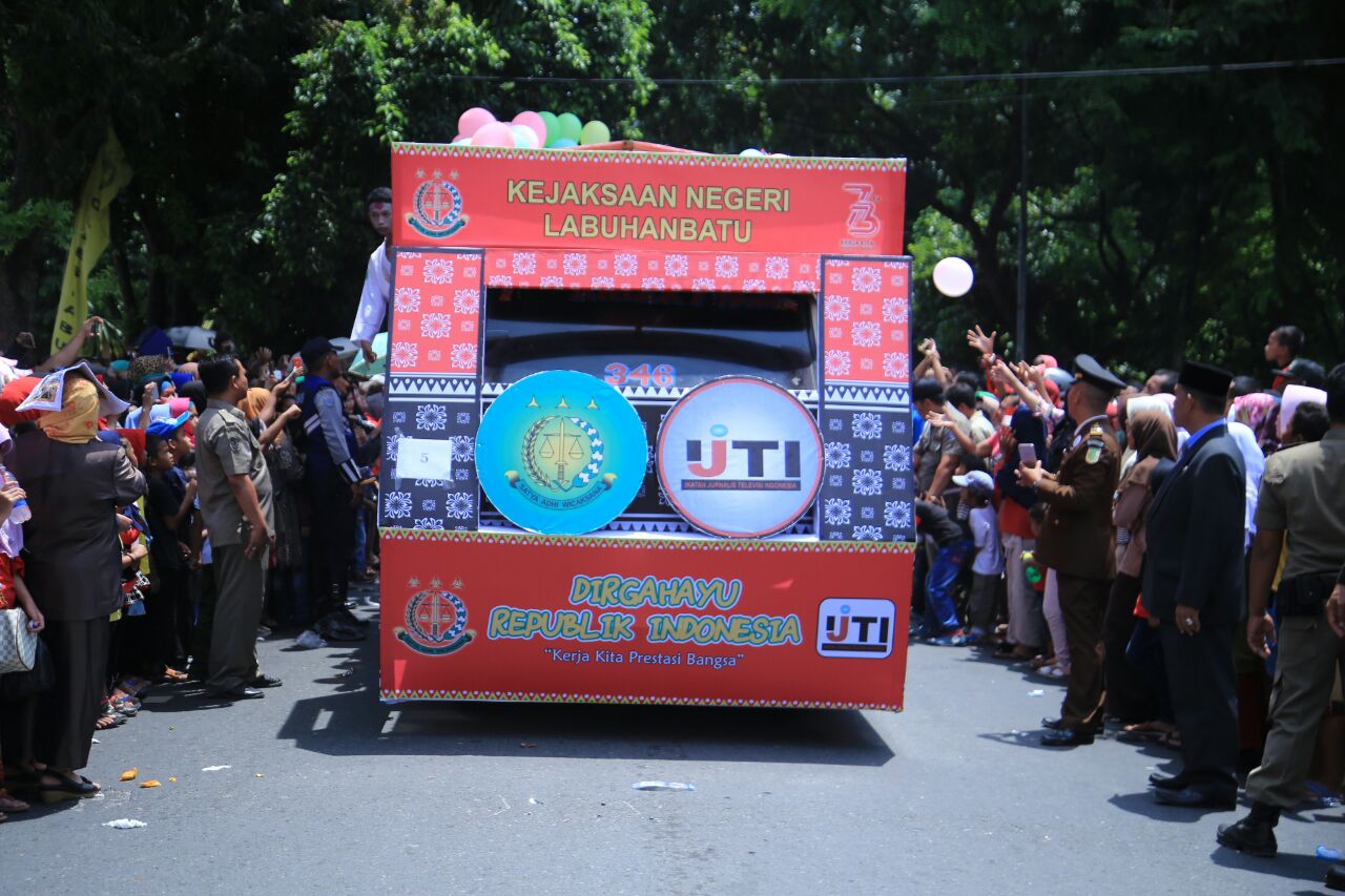 Kejaksaan Negeri Labuhanbatu turut memeriahkan rangkaian peringatan Hari Kemerdekaan RI yang Ke-73 yang diselenggarakan Pemerintah Daerah Kabupaten Labuhanbatu. Salah satu rangkaian kegiatan tersebut adalah karnval mobil hias dimana Kejaksaan Negeri Labuhanbatu dibawah kepemimpinan Bapak Kajari SETYO PRANOTO, SH, MH telah memberikan pelayanan terbaik atau mendekatkan diri kepada masyarakat dengan mensosialisasikan program pelayanan masyarakat.