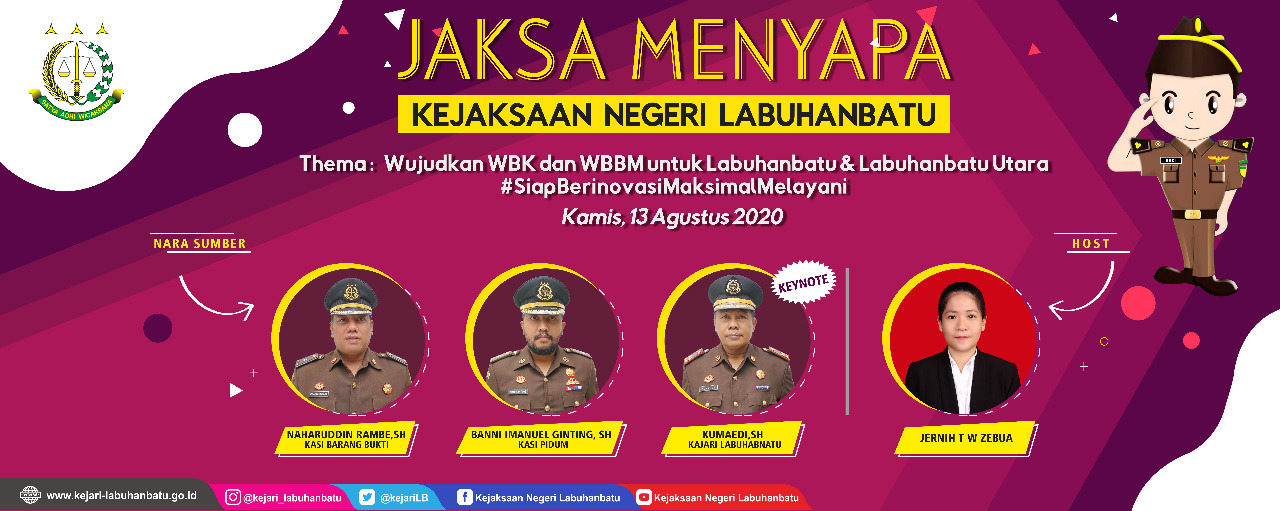 Beranda Galeri Foto Video Jaksa Menyapa Kejari Labuhanbatu VideoJaksa Menyapa Kejari Labuhanbatukejarilabuhanbatu1 min baca15/08/2020×Jaksa Menyapa Kejari LabuhanbatuSebarkan artikel ini Pos TerkaitVideoJaksa Menyapa (Kejaksaan, KPU dan Bawaslu Bersatu Wujudkan Pilkada 2020 Bermartabat)VideoRangkaian Kegiatan Kejari Labuhantu Dalam Peringatan HBA Ke-60Press Release Capaian Kinerja Kejari LabuhanbatuBeritaKejaksaan Negeri Labuhanbatu Gelar Rapid Test 68 PegawainyaVideoKejaksaan Negeri Labuhanbatu Menuju WBK dan WBBM Tahun 2020VideoKejari Labuhanbatu Gelar Sidang Daring (online)